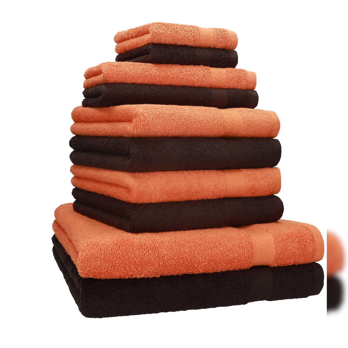 Betz 10-tlg. Handtuch-Set CLASSIC 100% Baumwolle 2 Duschtücher 4 Handtücher 2 Gästetücher 2 Seiftücher Farbe orange und dunkelbraun