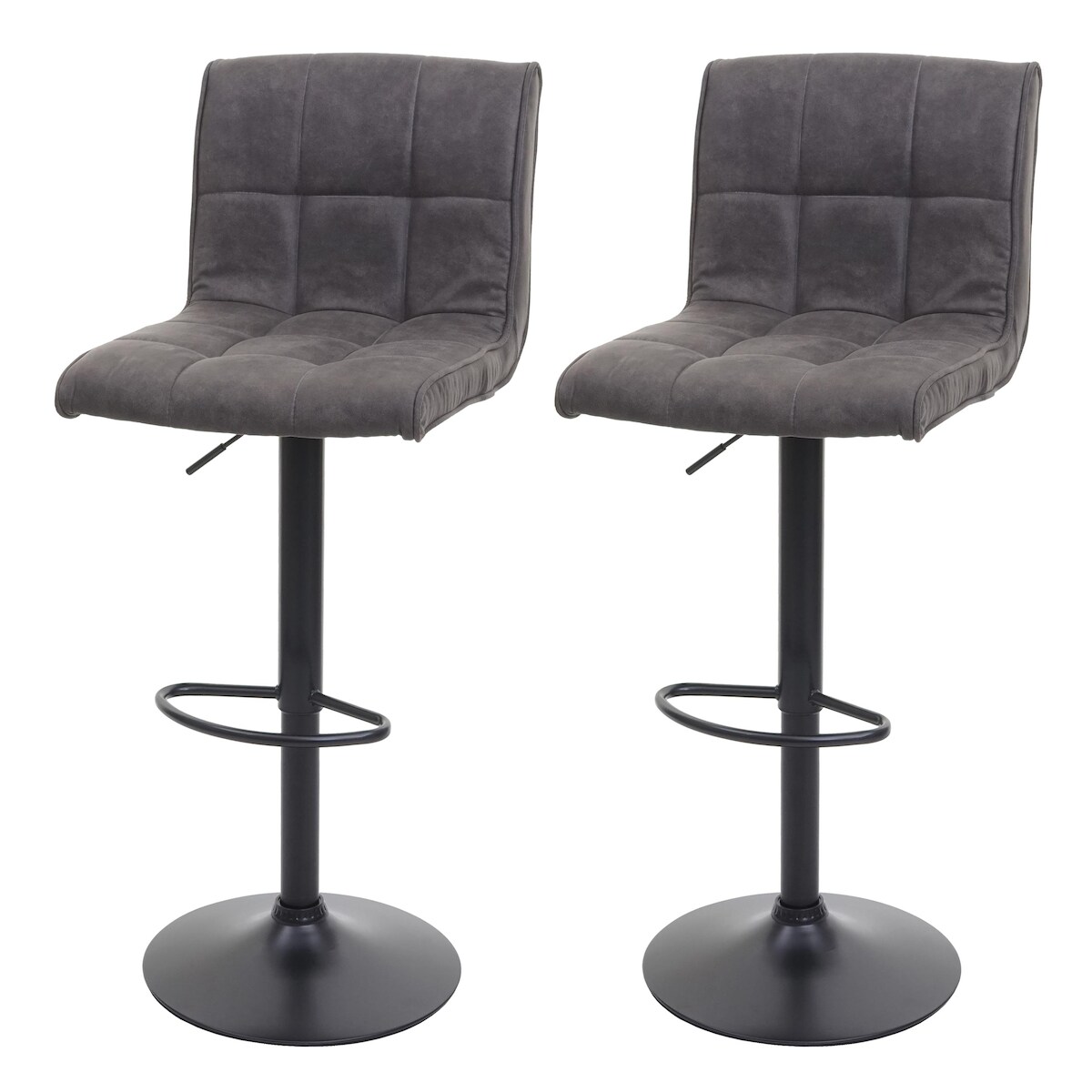 PROREGAL 2er-Set Barhocker gepolstert und höhenverstellbar mit Lehne | Sitzhöhe 64-85cm | Wildlederimitat| vintage Dunkelgrau | Barstuhl Tresenhocker