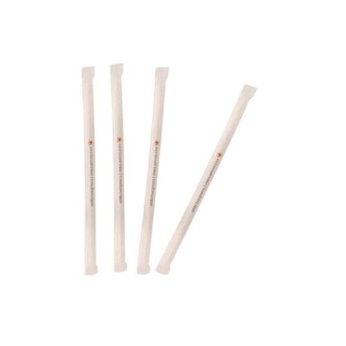 Ekoe Weiße kompostierbare Strohhalme, einzeln verpackt, 0,7 x 21 cm, 200 Stück