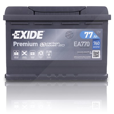 Exide EA770 Premium Carbon Boost 77Ah 760A [Hersteller-Nr. EA770] für Geely, Alfa Romeo, Vauxhall, Talbot, Porsche, Honda, Jeep, Rayton Fissore, Maser