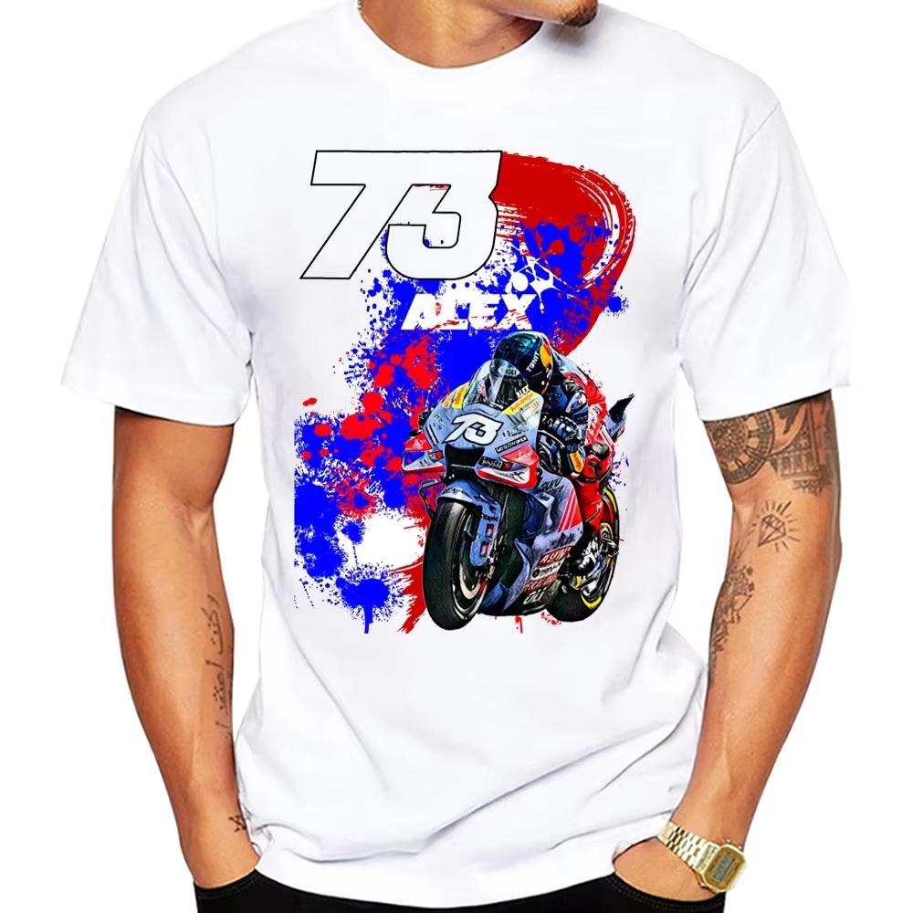 2025 Neu Alex Marquez 73 GP 2025 Klassisches Fahr-T-Shirt Sommer Herren Kurzarm Moto Sport Lässig Weiß Motorrad-Tee Moto cm