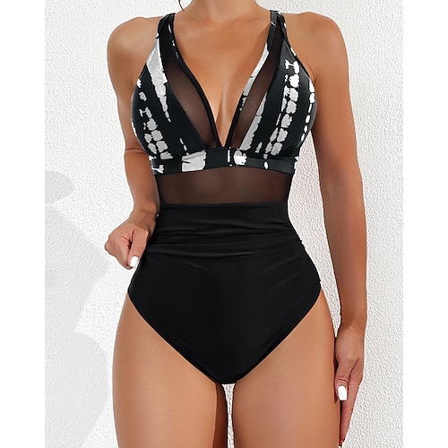 WOMEN'S ONE PIECE COSTUME DA BAGNO LEOPARDO MONOKINI DRESS CONTROLLO DELLA PANCIA ALTA VITA SLIM SENZA SCHIENA VACANZA AL MARE STAMPA FLOREALE A STRISCE ZEBRA COLLETTO A U SENZA MANICHE