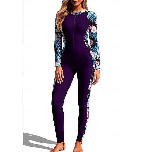 Per donna Costume da Bagno Rash Guard Floreale Stampato Asciugatura Rapida Leggero Traspirante Manica Lunga Costume da Bagno Costume da bagno 2 Pezzi Cerniera Frontale Surf Spiaggia Sport Acquatici