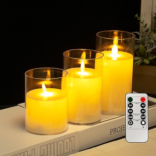 3 candele a led senza fiamma con telecomando, candele di cera senza fumo per proposte di matrimonio, feste, cene, illuminazione ambientale, alimentate a batteria AAA, decorazioni per la casa