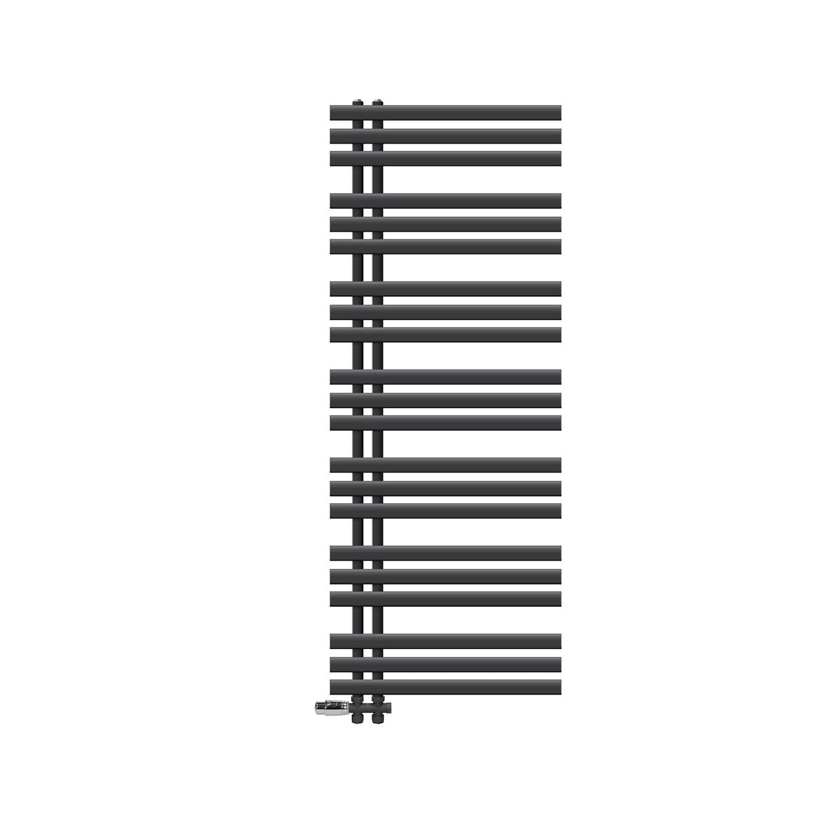 LuxeBath Badheizkörper Iron EM 600x1600 Anthrazit | Seitenanschluss, Durchgang Boden, Thermostat