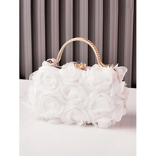 pochette da sera floreale da donna con tracolla a catena, elegante design con applicazione di rose, borsa formale multicolore per matrimoni, feste serali e banchetti