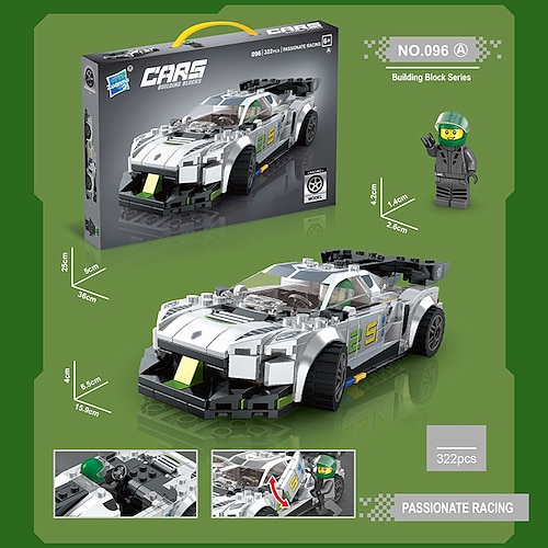 Blocchi da costruzione Piccolo kit di assemblaggio di macchine da corsa sportiva per bambini Compatibile con un ragazzo e una ragazza alti Giocattolo di blocchi da costruzione Regalo di Natale