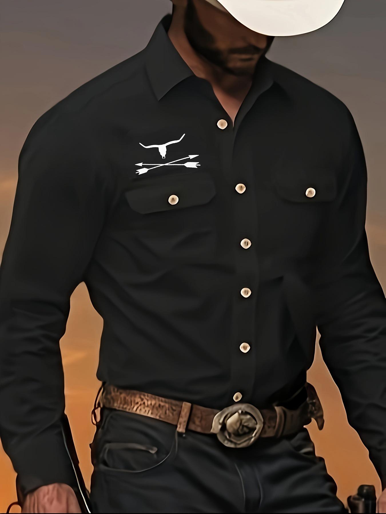 Herren-Freizeithemd mit Knopfleiste und Umlegekragen aus der Denim-Serie 2025 mit Bullhead-Print. cm schwarz