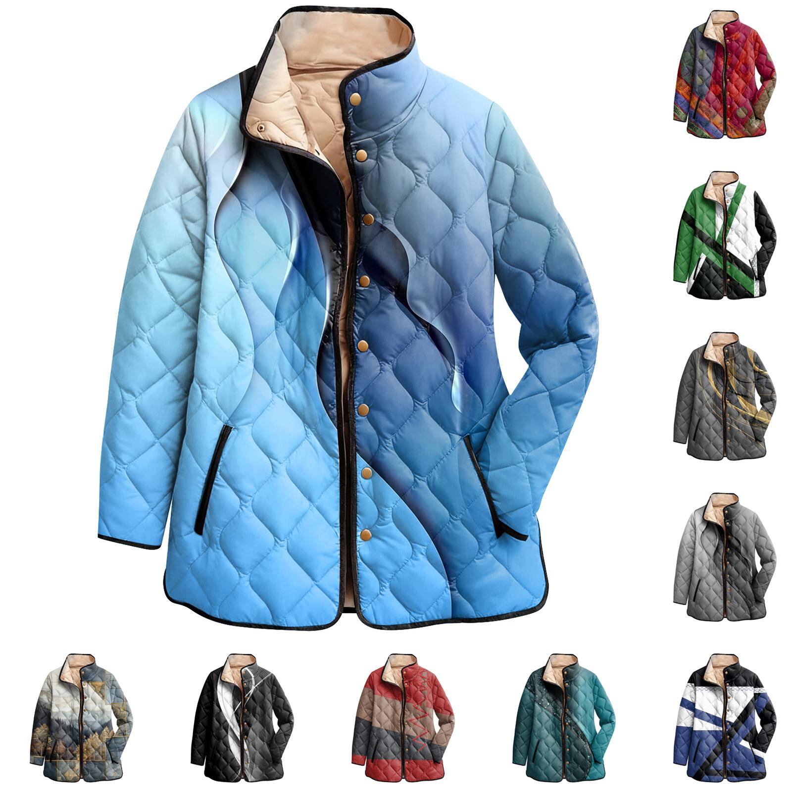 Damen Baumwolljacke mit Stehkragen, floralem Print, Plisseedetails, langen Ärmeln und Knopfverschluss cm blau