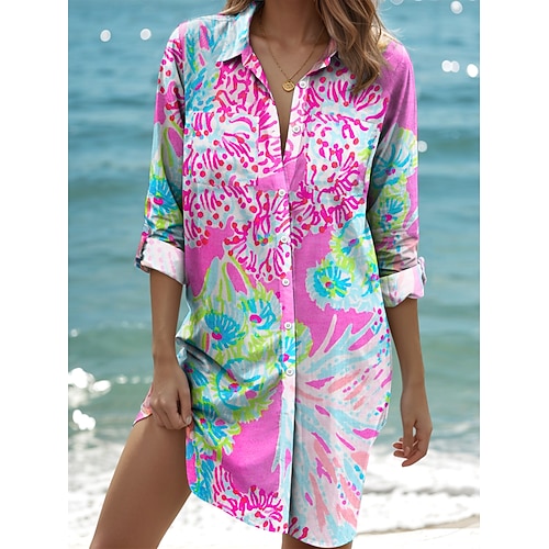 Per donna Camicia Blusa Bottoni Stampato Floreale Elegante Casual Manica Lunga Colletto a Camicia Top Regolari Quotidiano Blu Rosa Viola Arancione Estate Primavera