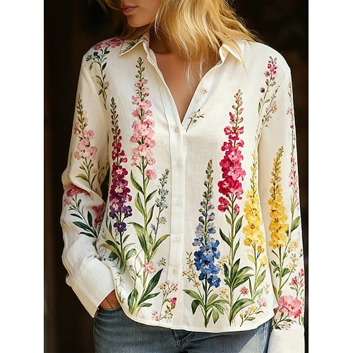 Per donna Camicia Bottoni Stampato Floreale Grafico Vintage Elegante Moderno Manica Lunga Colletto a Camicia Top lunghi Quotidiano Bianco Giallo Rosa Estate Primavera
