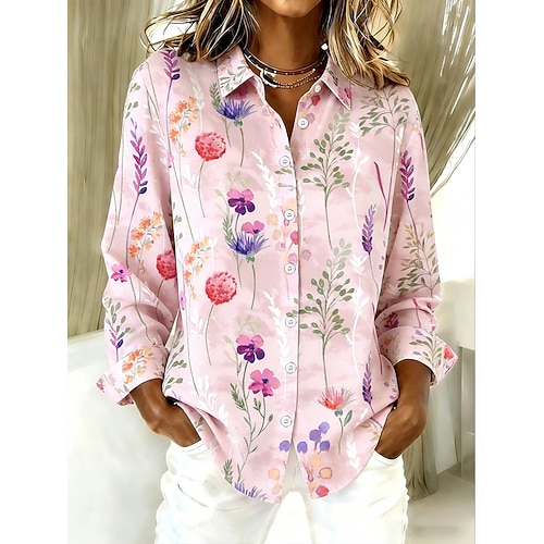 Per donna Camicia Bottoni Stampato Floreale Attivo Quotidiano Elegante Manica Lunga Colletto a Camicia Top Regolari Quotidiano Ferie Blu Rosa Cachi Primavera Autunno