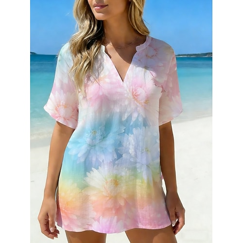 Per donna Camicia Camicia casual Camicia da Spiaggia Blusa Stampato Floreale Elegante Classico Moderno Manica Corta Scollo a V Top Regolari Quotidiano Ferie Uscire Blu Rosa Azzurro cielo Azzurro