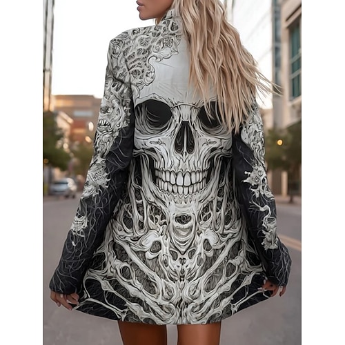 Cappotto da donna leggero confortevole stampa teschi vintage artistica casual casual lungo senza colletto vestibilità regolare a manica lunga outerwear nero bianco marrone primavera autunno