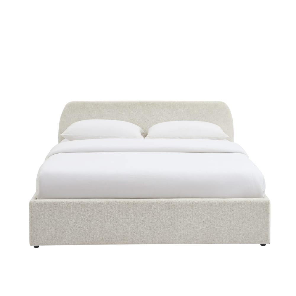 Venesetti Lit double avec coffre tissu bouclettes capitonné beige 180x200 Beige 225x104x224cm