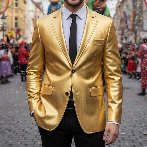 Retrò Vintage Anni '80 Metallico Lucido Smoking Completi Blazer Slim Fit Costume Per uomo Costume di Carnevale Natale Carnevale Capodanno Feste Club Parata dell'Orgoglio Adulti Cappotto