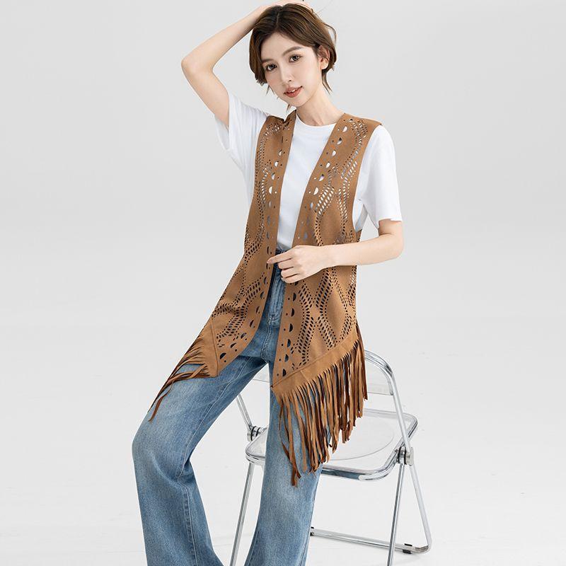 Westerse Cowboy Dwaalstijl Suède Kwastjes Uitgesneden Dunne Stijl Camisole voor Reizen Gecombineerd met een Klein Vest Dames Top cm rood