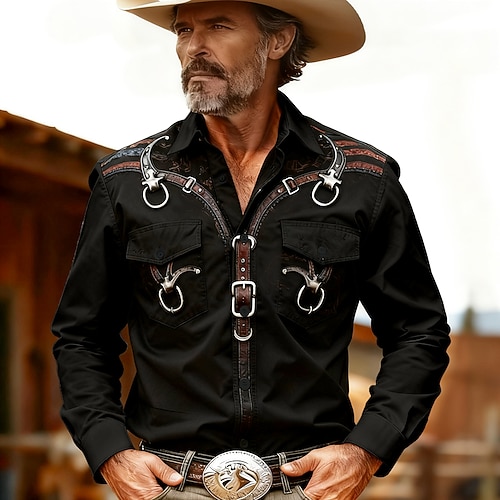 Per uomo Imbracatura Hardware per chiodi Camicia Camicia Western Camicia da cowboy Manica Lunga Vintage Retrò All'aperto Casuale Abbigliamento da lavoro Primavera Autunno Collo ripiegato Due tasche