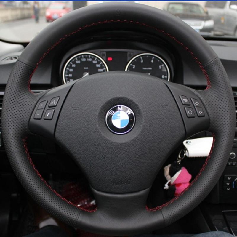 Kunstskinn DIY Svart Håndsydd Rattetrekk For BMW 320d 325i 335i X1 E84 E90 E91(Touring) Bil tilbehør