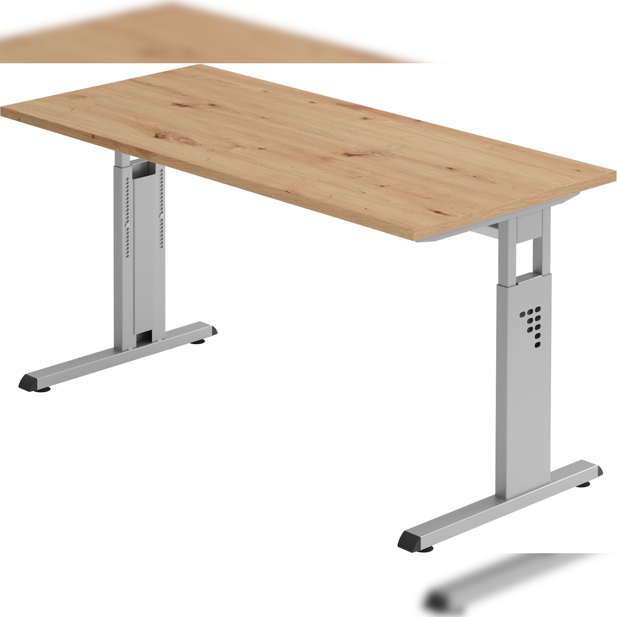 bümö Homeoffice Schreibtisch "O-Serie" höhenverstellbar, Tischplatte 140 x 67,2 cm in Asteiche, Gestell in silber