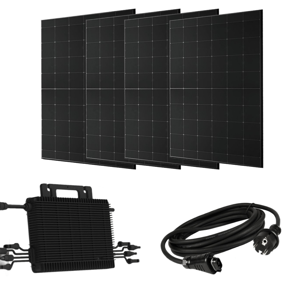 Paket.ag Balkonkraftwerk 1840W Komplettset: 4x 460W bifaciale Glas-Glas Module (Full Black) & Hoymiles HMS-1800watt Mikro-Wechselrichter | Plug & Play