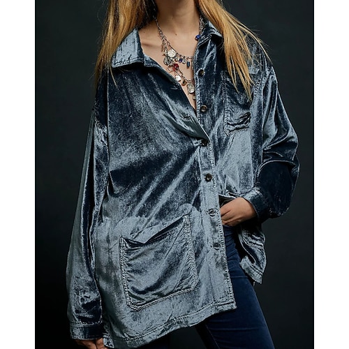 Per donna Camicia Velluto Elegant Elegante Semplice Vintage Elegante Manica Lunga Colletto a Camicia Top Regolari Ferie Uscire Bottoni Argento Blu marino Rosa Primavera Autunno