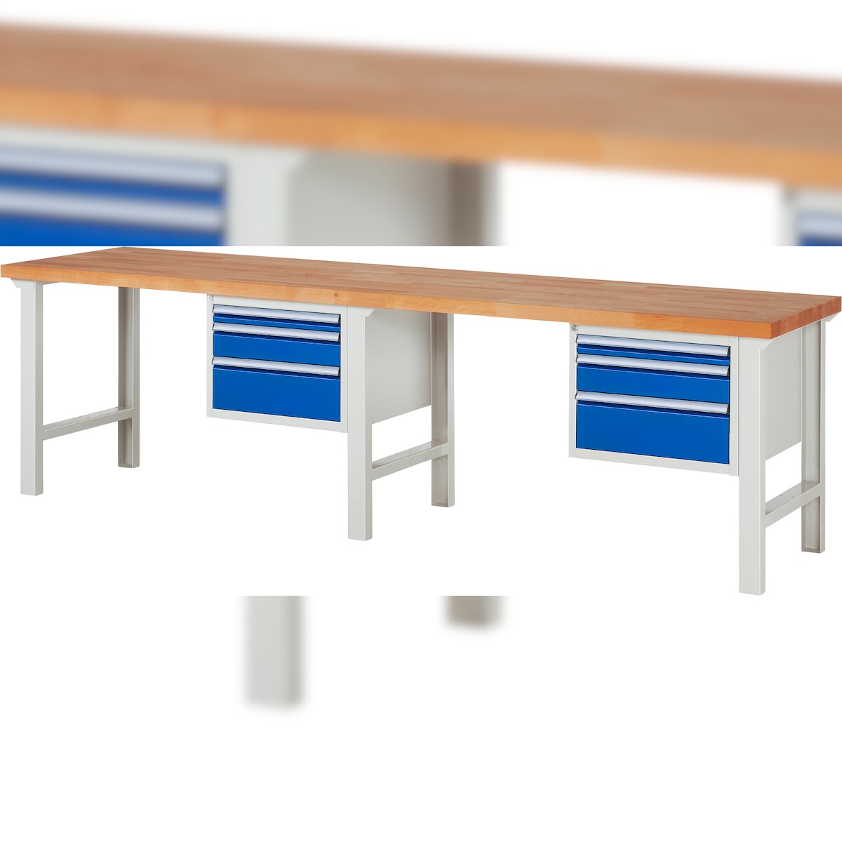 PROREGAL Werkbank Serie 7000 - Modell 7126 | HxBxT 84x300x70cm | 6x Schublade | Schubladenmaße 2x60 + 2x120 + 2x180mm