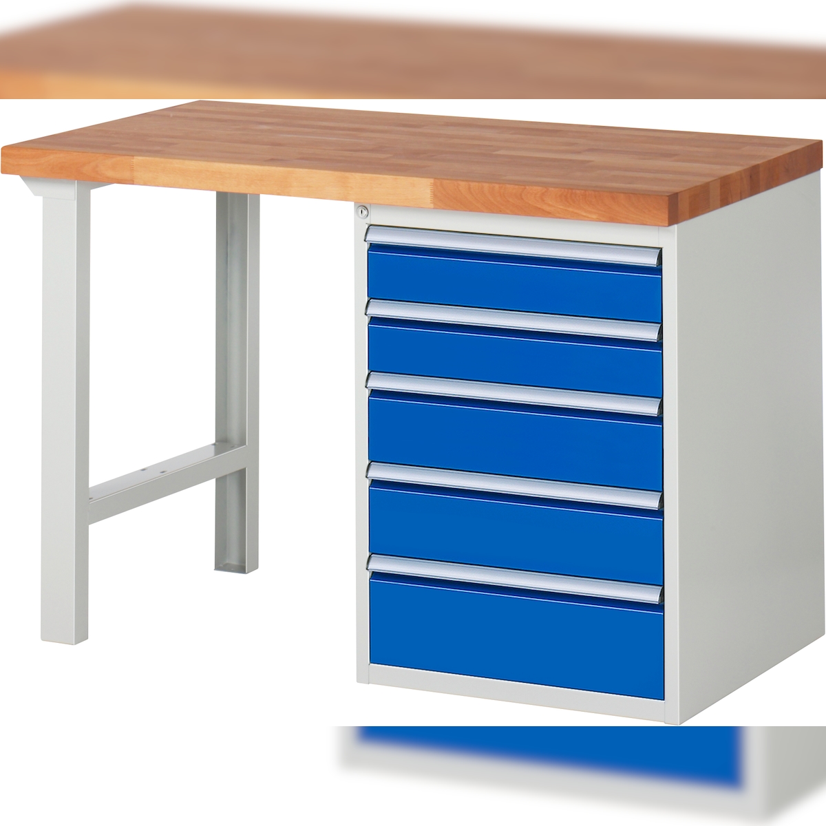 PROREGAL Werkbank Serie 7000 - Modell 7513 | HxBxT 84x125x70cm | 5x Schublade | Schubladenmaße 2x120 + 2x150 + 1x180mm