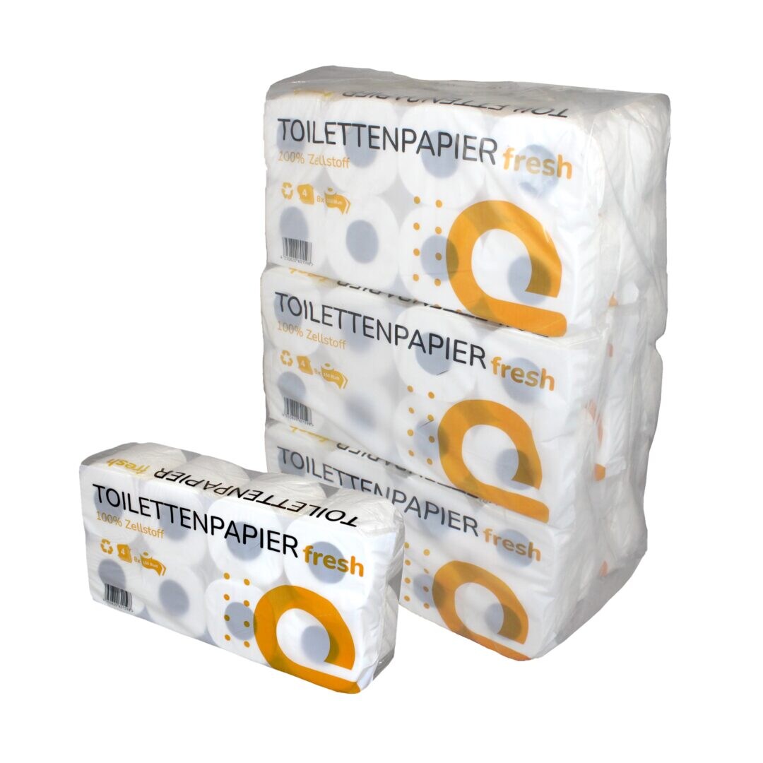 Toilettenpapier Huchtemeier, weiß, 100 % Zellstoff, 4-lagig, 150 Blatt, 9x8=72 Rollen im Folienbeutel #T4-150-Z-28VE