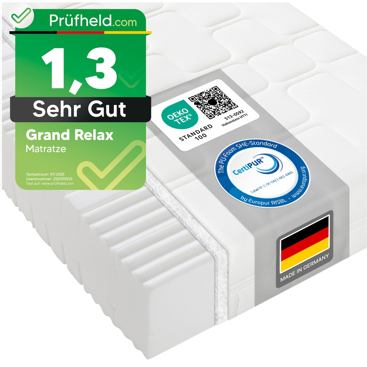 Kaltschaummatratze BeCo Grand Relax, 25 cm Komforthöhe, Made in Germany - Größe: 90 x 200 cm, Härtegrad: H3 (80 kg - 120 kg)