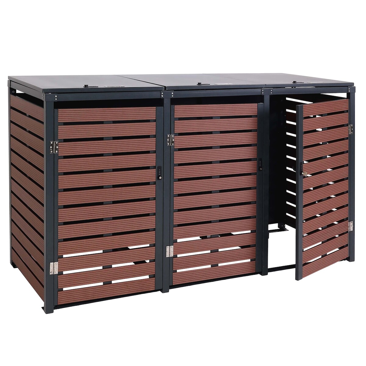 Mendler 3er Mülltonnenverkleidung HWC-K14, Mülltonnenbox Mülltonnenabdeckung, 119x205x84cm WPC Metall 109kg ~ Walnuss-Holzoptik