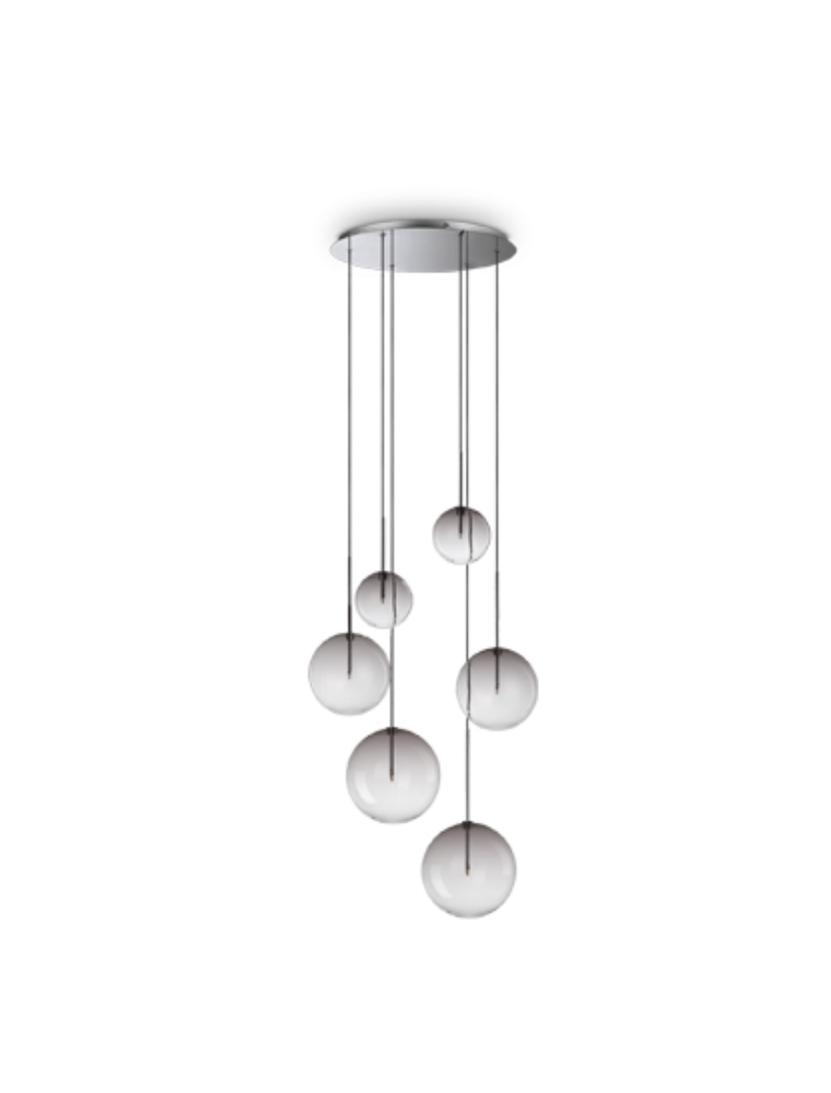 equinoxe sp6, aufhängung aus verchromtem metall mit diffusoren aus rauchglas, ideal lux