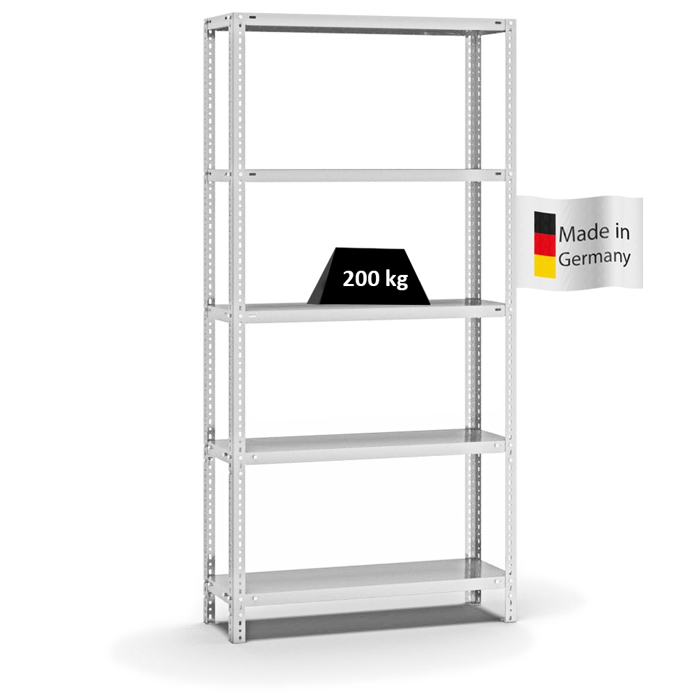 PROREGAL Fachbodenregal Schraubsystem | Grundregal | HxBxT 200x100x30cm | 5 Ebenen | Fachlast 200 kg | Beidseitig nutzbar | Lichtgrau
