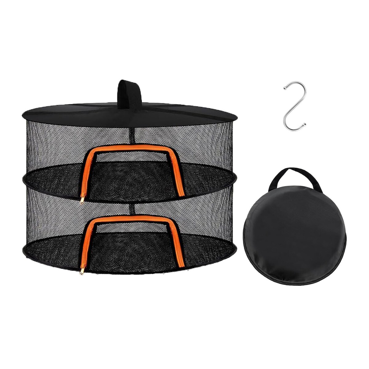 Relaxdays Trockennetz faltbar, Dörrnetz 2 Ebenen für Kräuter, Obst, Gemüse, Fischtrockner zum Aufhängen, orange/schwarz