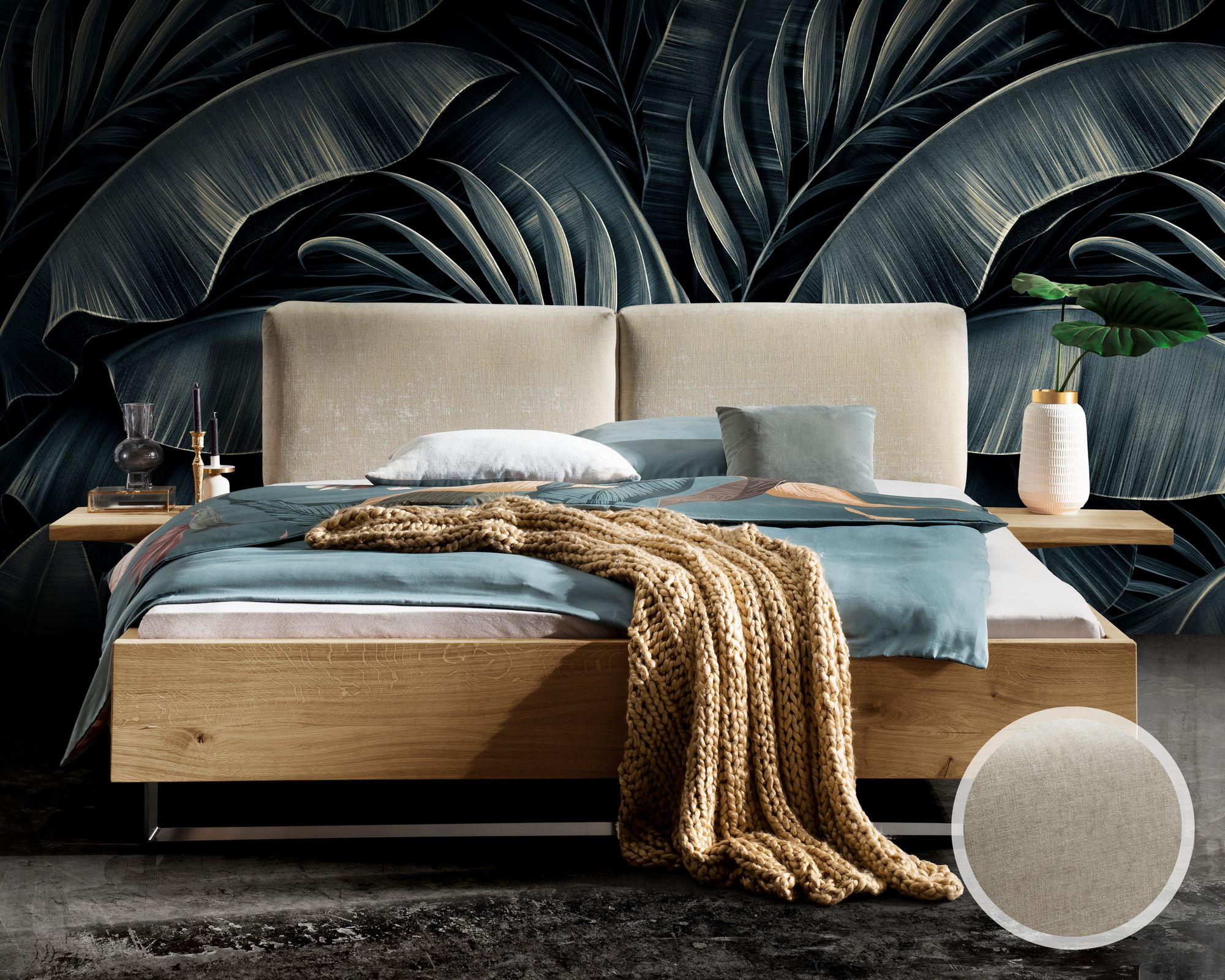 Forestales »Modesto« Massivholzbett mit hohem Fußteil 160x200 cm / Wildeiche / parkettverleimt