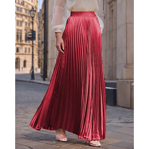 Per donna Gonna Gonna Lunga Moda Lungo Maxi Vita Alta Gonne Tinta unita Arricciato Pieghettato Luccicante Micro-elastico Quotidiano Ferie Verde mela Aalbicocca Rosso bordeaux Rosa viola Primavera