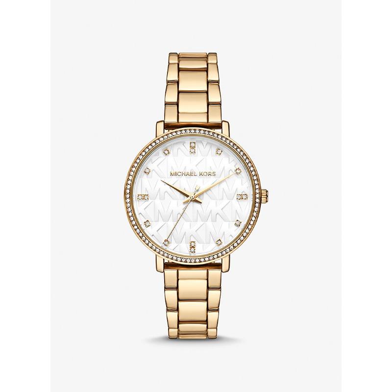 Michael Kors Pyper Gullfarget Preget Logo Klokke MK4666 gull