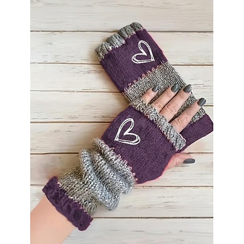 Guanti natalizi da donna in maglia con motivo a cuore ricamato, vari colori, comodi accessori invernali per le festività