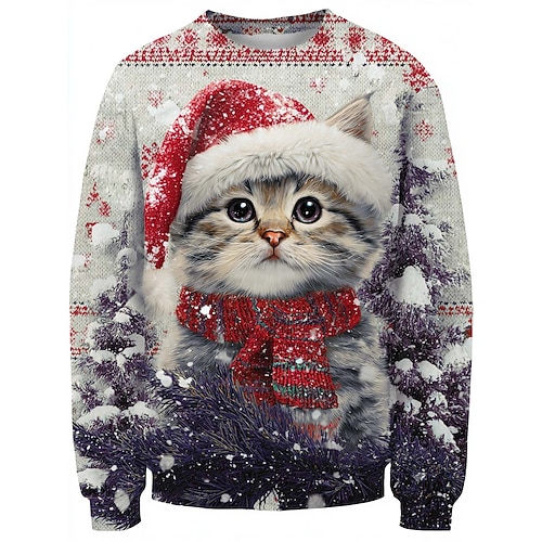 Felpa Donna Pullover Grafica Animale Gatto Attiva Carina Casual Manica Lunga Collo Tondo Regolare Top Street Casual Vacanza Stampa Viola Marrone Verde Primavera Autunno Inverno Primavera
