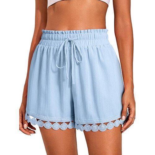 Per donna Chinos Shorts Pantaloncini Estivi Vacanza Moda Streetwear Corto Vita Alta Semplice Coulisse Pizzo Elastico in vita Comodità Traspirabilità Confortevole Inelastico Micro-elastico Quotidiano