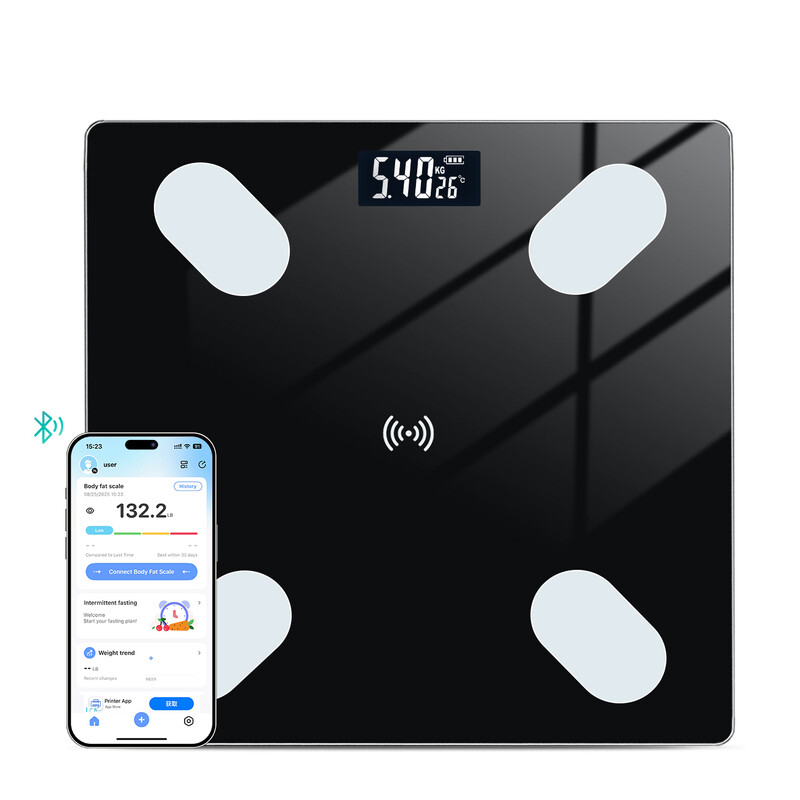 Sparoma ADL-26 Balance Connectée Bluetooth, suivi avec application, multi-utilisateur, 2×AAA piles requises,180 kg max - Noir