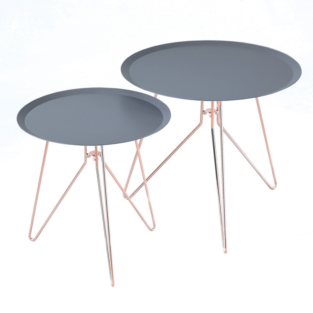 Set 2 tavolini piano antracite e rame, Ø50/40 cm