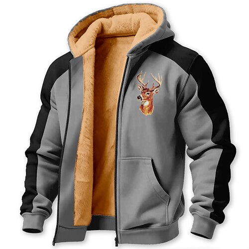 Per uomo Cervo Pile Felpa con Cappuccio Giacca di pelle Felpa Classico Militare Da caccia Manica Lunga Girocollo All'aperto Campeggio Marrone chiaro Marrone Grigio Con zip Autunno Inverno progettista