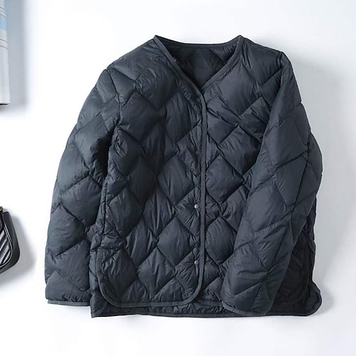 Per donna Giacca Piumino Caldo Confortevole Bottoni Casual Semplice Ferie Casual Quotidiano Weekend Monopetto Regolare Scollo a V Vestibilità regolare Manica Lunga Capispalla Rosa Verde scuro Cachi