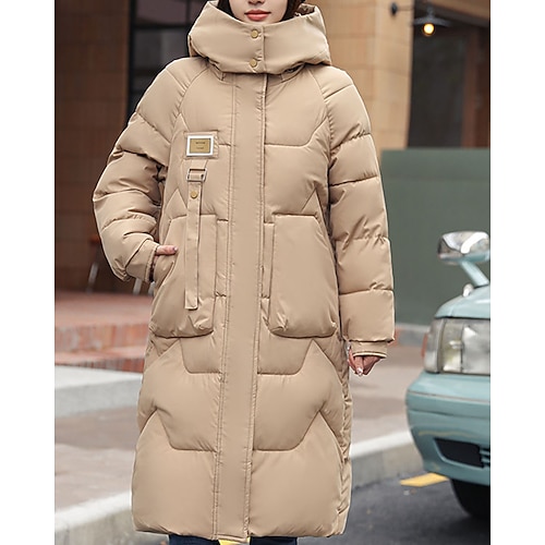 Per donna Cappotto Invernale Giacca Piumino Caldo Confortevole Cerniera Tasca Casual Tinta unica Vacanza Abbigliamento quotidiano Uscire Weekend Lungo Con Cappuccio Vestibilità regolare Manica Lunga