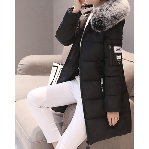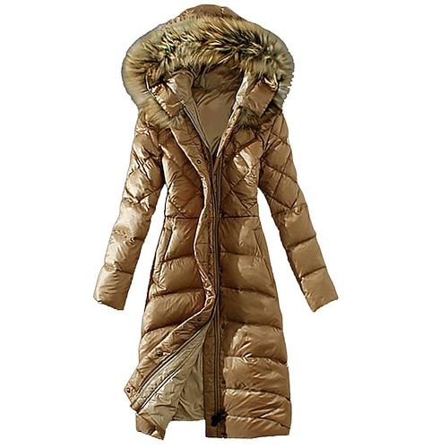 Per donna Cappotto Invernale Giacca Piumino Giacca con Cappuccio Caldo Confortevole Cerniera Tasca Collo in Pelliccia Casual Semplice Vacanza Uscire Weekend Lungo Con Cappuccio Vestibilità regolare