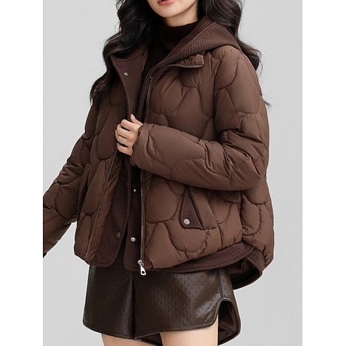 Per donna Cappotto Invernale Giacca Piumino Giacca con Cappuccio Caldo Confortevole Cerniera Tasca Orlo irregolare Casual Tinta unica Vacanza Abbigliamento quotidiano Uscire Weekend Regolare Con