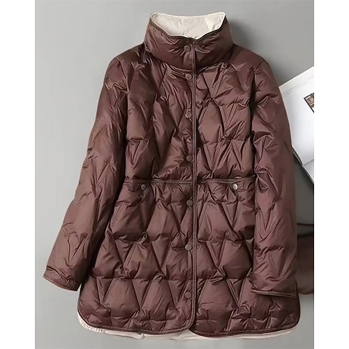 Per donna Giacca Piumino Giacca imbottita Giacca trapuntata Caldo Confortevole Tasca Bottoni Moda Casual Semplice Streetwear Casuale Abbigliamento quotidiano Uscire Monopetto Lungo Collo alla coreana