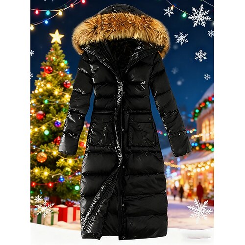 Per donna Cappotto Invernale Giacca Piumino Giacca con Cappuccio Caldo Confortevole Cerniera Tasca Collo in Pelliccia Casual Semplice Vacanza Abbigliamento quotidiano Uscire Weekend Lungo Con