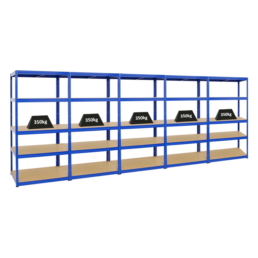 PROREGAL Mega Deal | 5x Schwerlastregal Slim Elephant M | HxBxT 180x90x60 cm | 5 Ebenen | Fachlast 350 kg | Blau | Stecksystem Lagerregal 5 Stk.